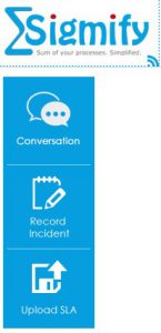 This section presents action items that the user can initiate e.g. starting a Sigmify® Conversation or a Trouble Ticket or an Incident – depending on their role and authorizations in their organization. Sigmify® Transactions provides integrated access to transactions across all enterprise applications that are integrated with Sigmify.
